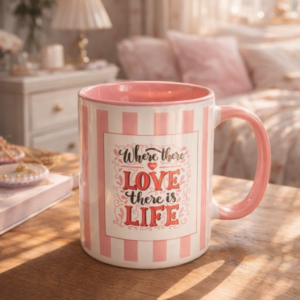 Pink Striped Ceramic Coffee Mug | Aesthetic Soft Girl Mug for Cozy Mornings